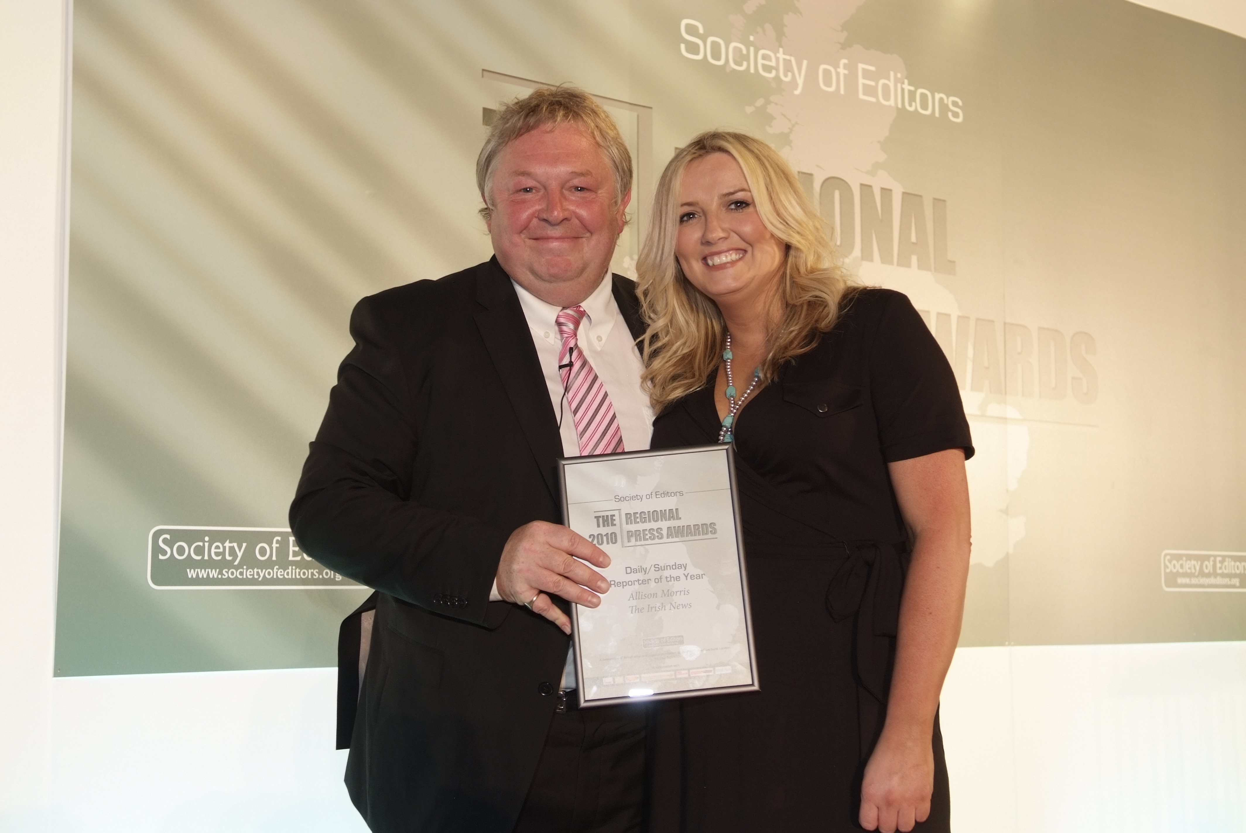 Allison Morris receives the British regional press award for Daily/Sunday reporter of the year on May 12th 2011, a few days after subpoenas were served on Boston College. Her portfolio of winning articles included her interview with Dolours Price