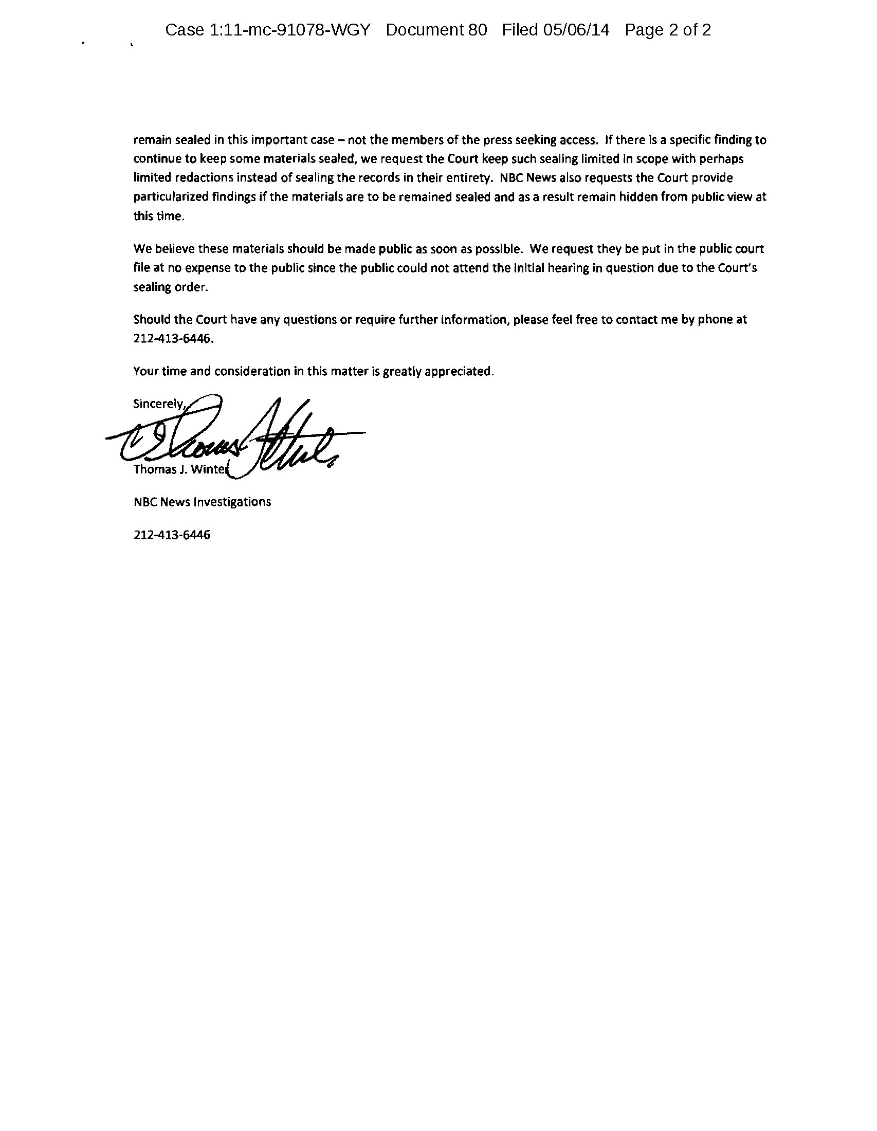 NBC wrote to Judge Young on May 6th, two weeks ago and the letter was sent by Thomas J Winter of NBC News Investigations. It is not known what response Judge Young has made, if any.