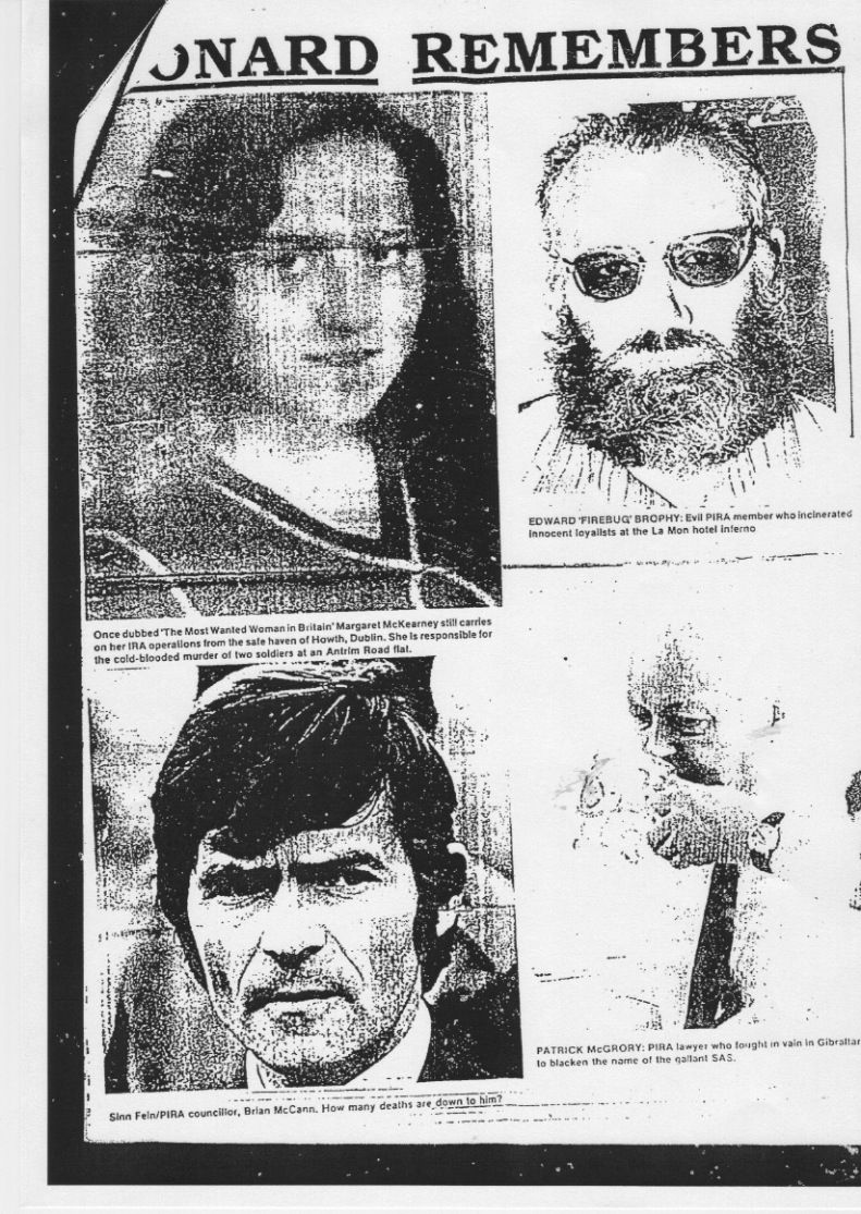 (‘An Phobcrapt’ is peppered with other photos of republican activists, details of their lives are given and, in the case of lawyers who MI5 would have known were on the UDA’s hitlist, their home addresses are published for all of Loyalism to see. In the case of Pat Finucane, he was, of course, shot dead in his home. How could de Silva absolve MI5 of any responsibilty for his killing in the light of this?)