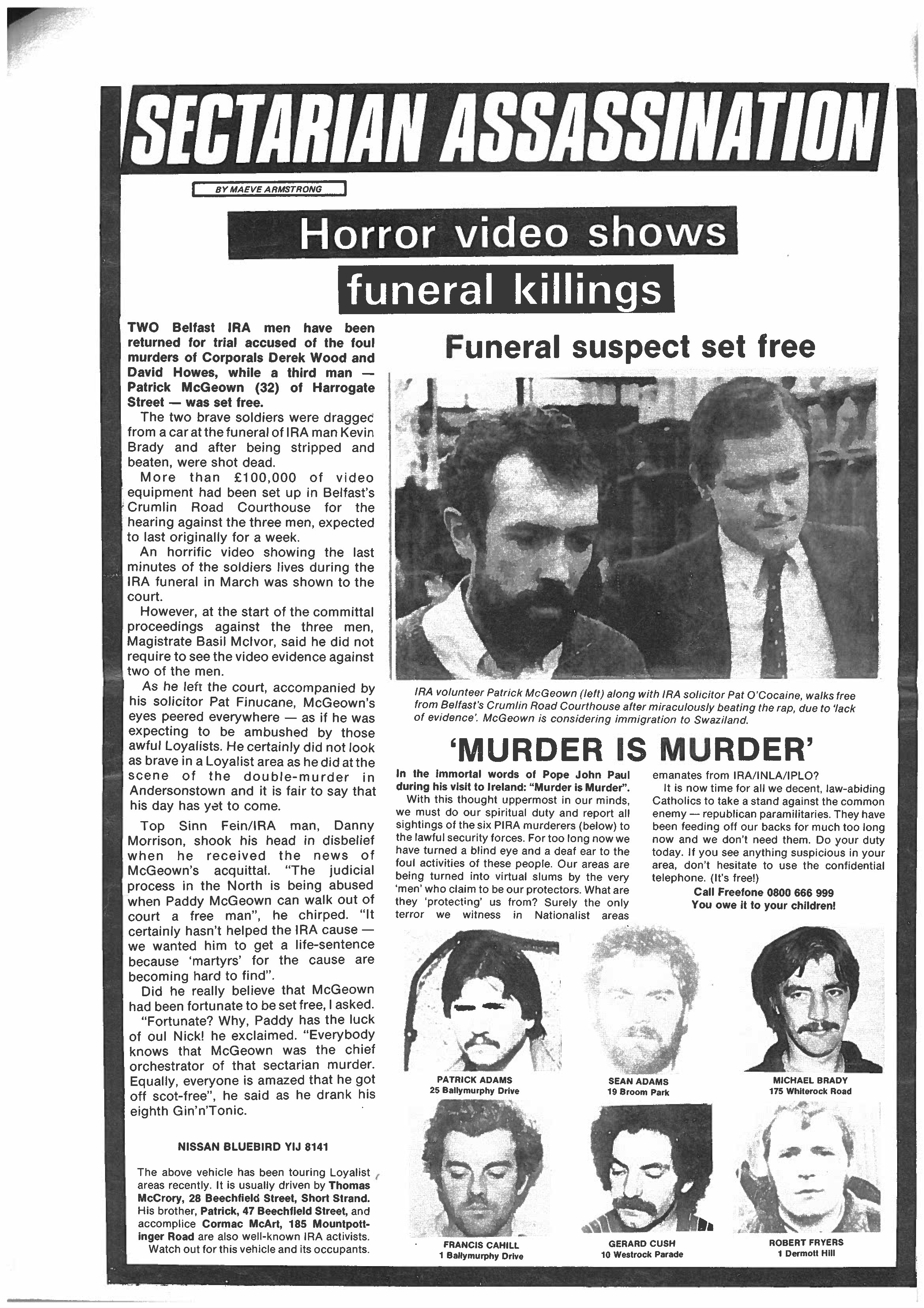 Indeed one of the issues of ‘An Phobcrapt’ carried the photo of Pat Finucane leaving court with a client, the late Pat McGeown, which Brian Nelson then passed on to his killers so they could identify the person they wanted to assassinate, i.e. Pat Finucane.