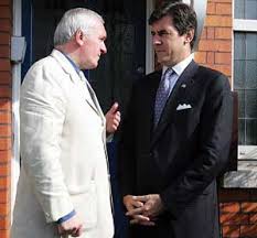 US peace envoy Mitchell Reiss (right) chats with former Irish Taoiseach, Bertie Ahern. Reiss revealed that Gerry Adams wanted to retain guns to use against dissidents. US believed IRA had retained ‘not just small arms’.