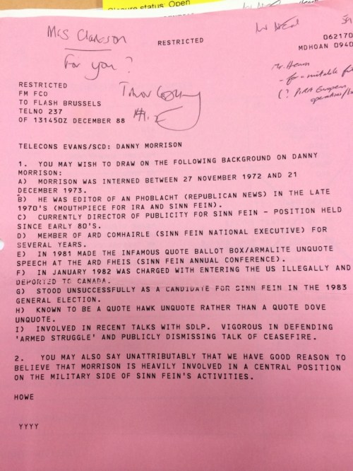 Officially The Daily Telegraph did not talk to Sinn Fein in those days — though I regularly met IRA members as part of my book research in south Armagh — and Sinn Fein would speak to the British government but not The Daily Telegraph.