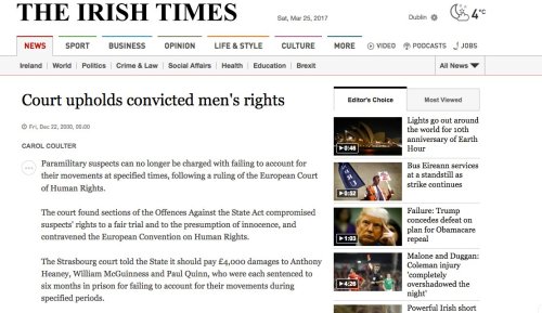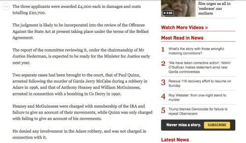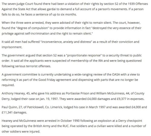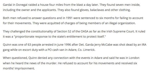 Donnelly commented: “It shows that McGuinness and some of his henchmen are a protected species: they are safe from arrest as long as they do not attack the British forces or the loyalists.”