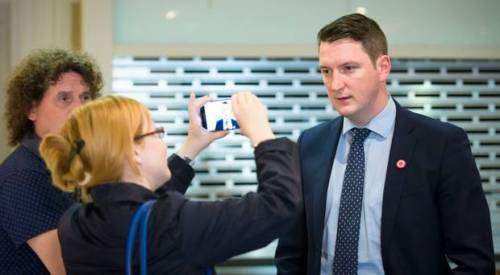 A free lifetime subscription to the first reader to correctly identify the curly-headed bloke standing beside John Finucane (the Sinn Fein Westminster candidate for North Belfast) in this photograph.
