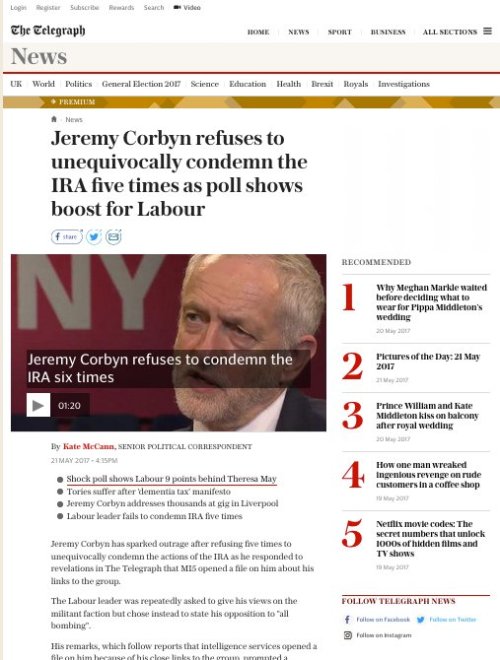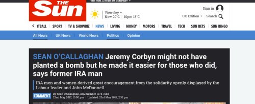 Sean O’Callaghan’s critique of Labour leader Jeremy Corbyn, coming as it does as the British Tory party seeks to halt the swing to Labour evident in recent general election opinion polls, would be more credible if he was to tell the full truth about his own past in the IRA.