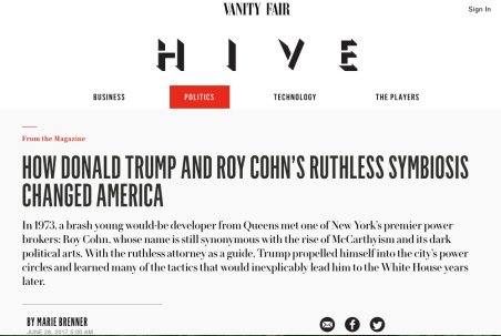 Written by veteran reporter Marie Brenner, the story leaves little doubt that but for Cohn, Donald Trump might have become a kinder, gentler person.