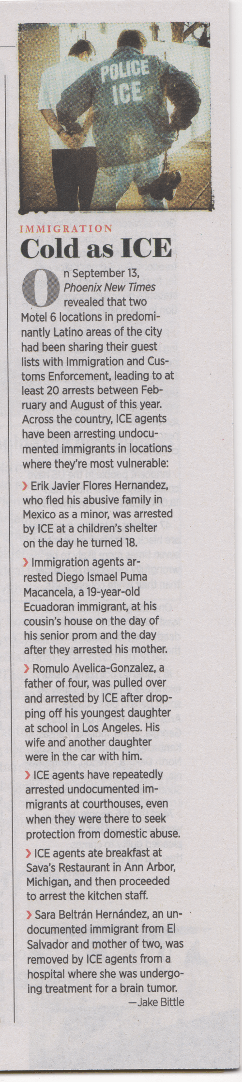As one might expect, the enthusiasm with which ICE agents are pursuing their prey is matched only by their callous indifference for the fate of their victims. ‘Cold as Ice’ is the perfect title for the Nation’s column: