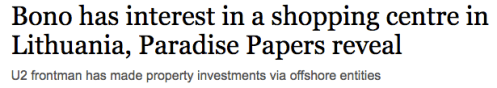 U2 frontman Bono has made a number of property investments via offshore entities. They includea shopping centre in Lithuania and an office building in Germany.