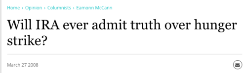 Eamonn McCann has emailed from Derry to remind me of an article he wrote in The Belfast Telegraph in March 2008 describing how two IRA prisoners, one of them Richard O’Rawe’s cellmate, confirmed to him O’Rawe’s version of the conversation he says he had with Brendan McFarlane, OC of the IRA in the Maze prison, in the wake of Danny Morrison’s July 5th, 1981 visit to him in the jail to outline a British offer to settle the 1981 hunger strike.