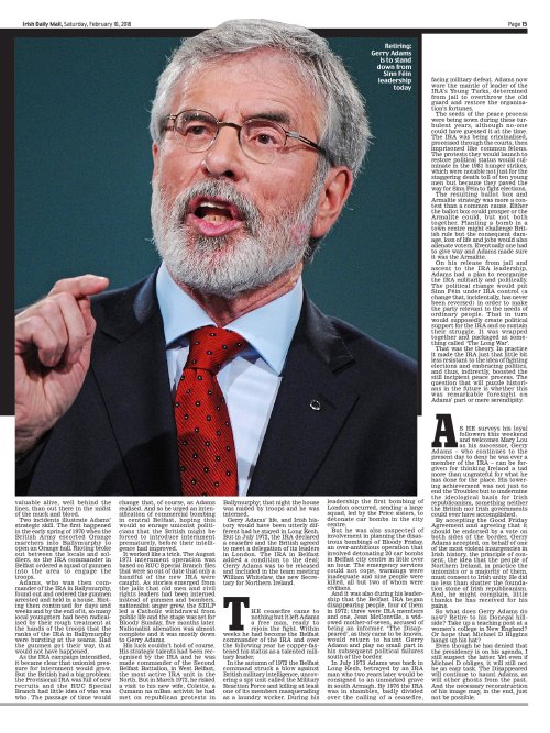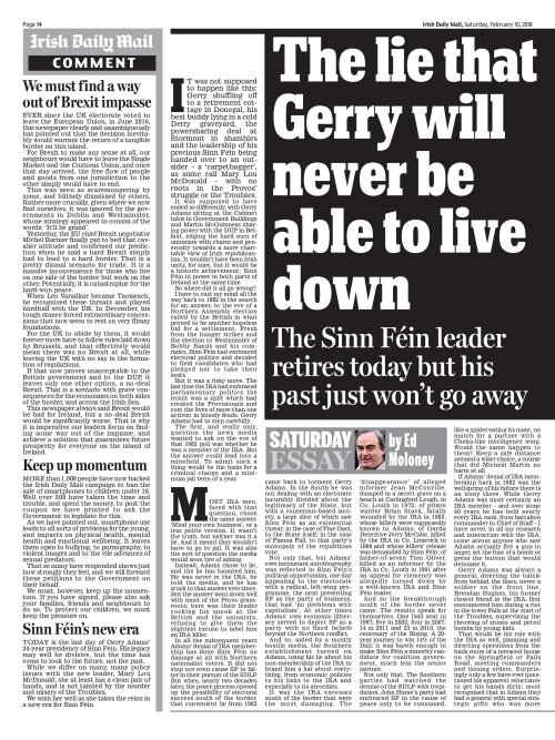 This was my take on Gerry Adams retirement from the Sinn Fein leadership. It was published in The Daily Mail last Saturday but because the paper does not have a website was not picked up. Hope you can read it. If not, here are links to the pdf versions: eLib_5522931 and eLib_5522921.