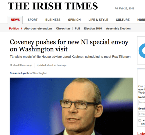 > The Broken Elbow posted: “I must confess it took me more than a few > moments to compose myself when I read the following headline in > tonight’s/tomorrow’s Irish Times: In the name of God, would someone please > tell Simon Coveney that the person now in charge of the White House” >
