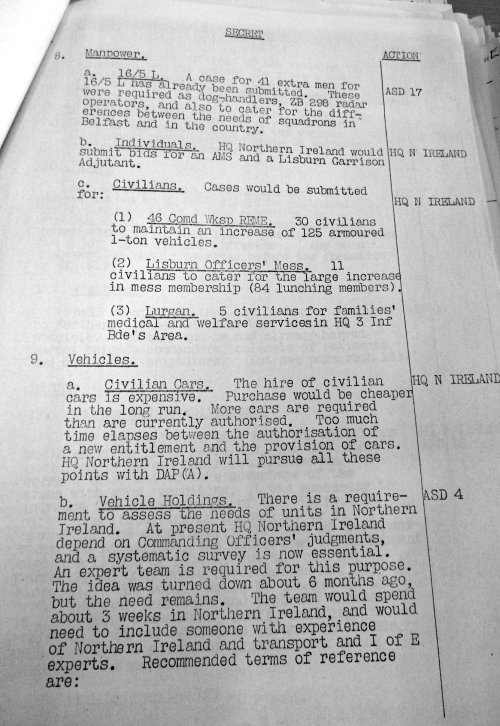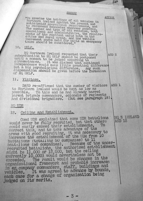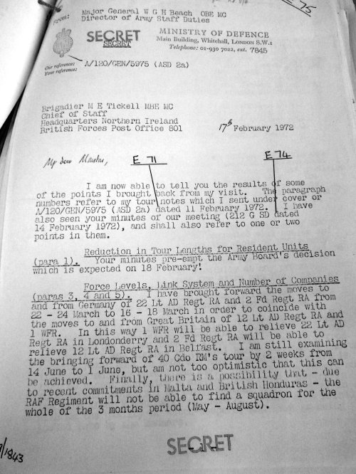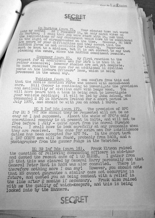 The second reference to ‘Mobile Reaction Force’ comes at the tail end of a six-page summary of the visit to British Army units by Maj-Gen Beach, the Director of Army Staff Duties on 8th and 9th February, 1972.