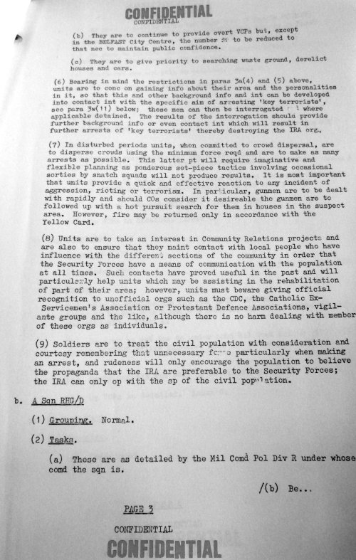 The document also has this interesting detail on the British Army’s arrest policy in the summer of 1972. Loyalist activists could not be arrested or interned, even though sectarian murders were soaring, but republicans of various sorts were fair game: