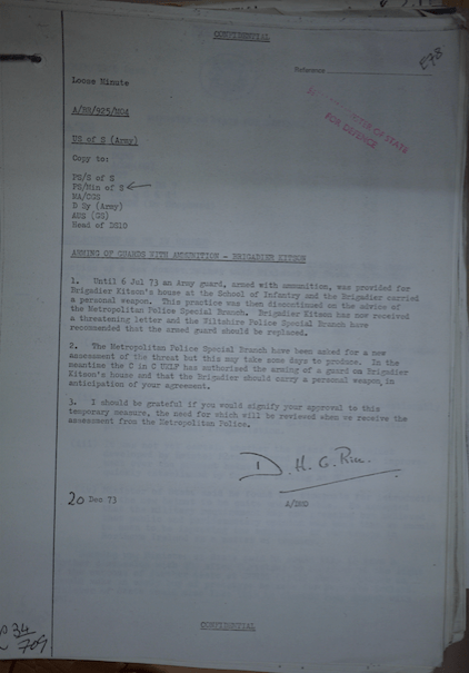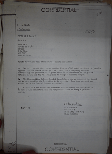 Documents released from the Kew archive in Surrey indicate that shortly after Kitson joined the School of Infantry, the MRF was no longer to be confined to the Belfast region.