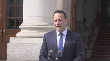 Irish prime minister Leo Varadkar mourns for Lyra McKee on the steps of Government Buildings in Dublin on Friday
