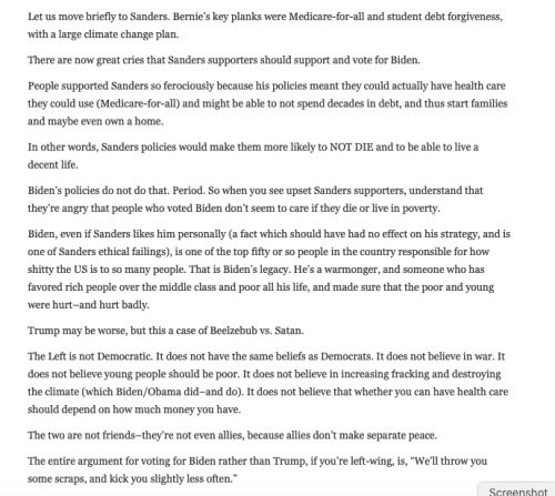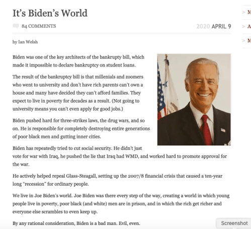 One of my favourite bloggers, Ian Welsh explains why he thinks Bernie Sanders should never have endorsed Joe Biden: