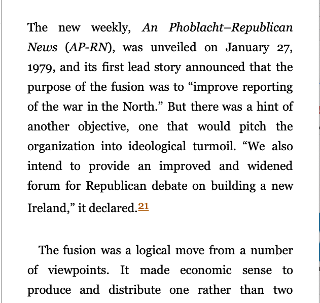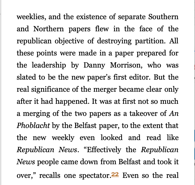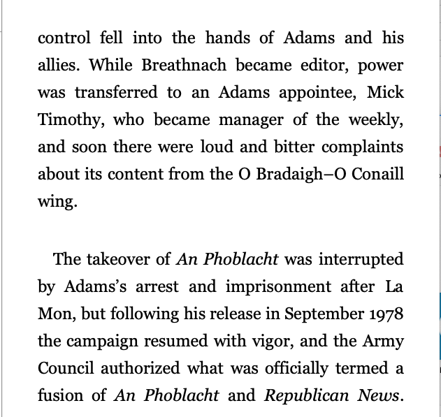 The Northern based weekly, Republican News was already controlled by Adams’ allies, headed by Danny Morrison. But not so the Southern weekly, An Phoblacht, which was edited by Gerry O’Hare, then a supporter of the O Bradaigh/O Connail group.