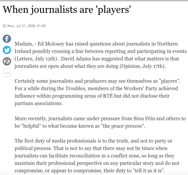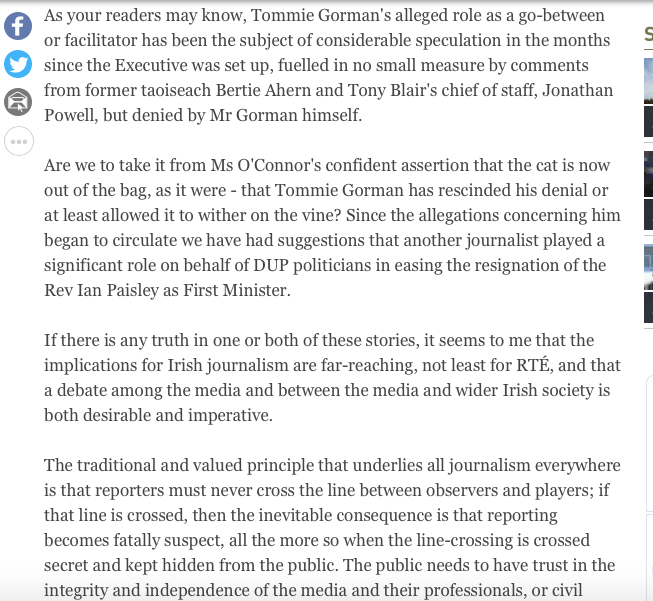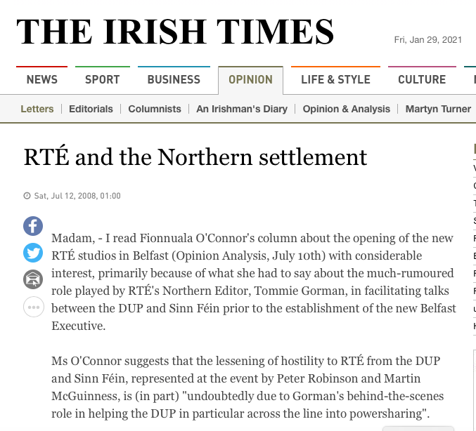 I could find only one reference to the document on the internet and that was a single paragraph in a preview of the Hillsborough Agreement written by John Bowman for The Irish Times. Otherwise it appears to have escaped the Irish media entirely, although I stand ready, and will be happy to be corrected. (A copy of this document can also be found on the CAIN archive.)