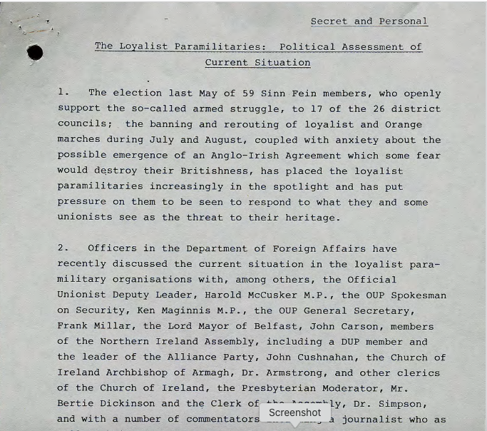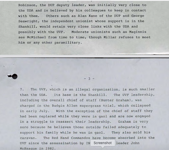 I went through this document – and a number of other Irish intelligence docs – with the man who was second-in-command of the UVF at the time.