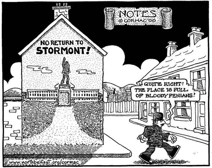 But what goes around, comes around. I doubt very much whether Danny Morrison’s observation remained correct throughout time and that when AP-RN moved into what can only be described as its Pyongyang Times phase, when pro-peace process political correctness became the stifling order of the day, people still as enthusiastically turned to the Cormac cartoon.